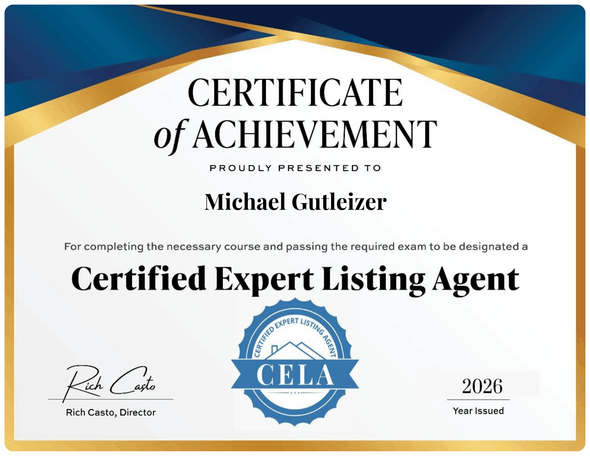 I’m excited to share that I am now officially a Certified Expert Listing Agent (CELA). This certification strengthens my ability to represent homeowners in South Florida with smarter pricing, stronger marketing, and a clear plan to get homes sold.